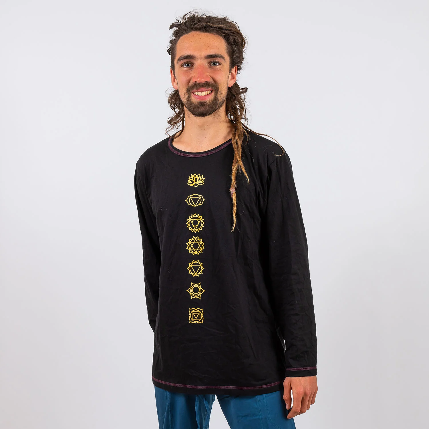 The seven chakra symbols are printed on it in gold representing the seven main energy centres in the body.