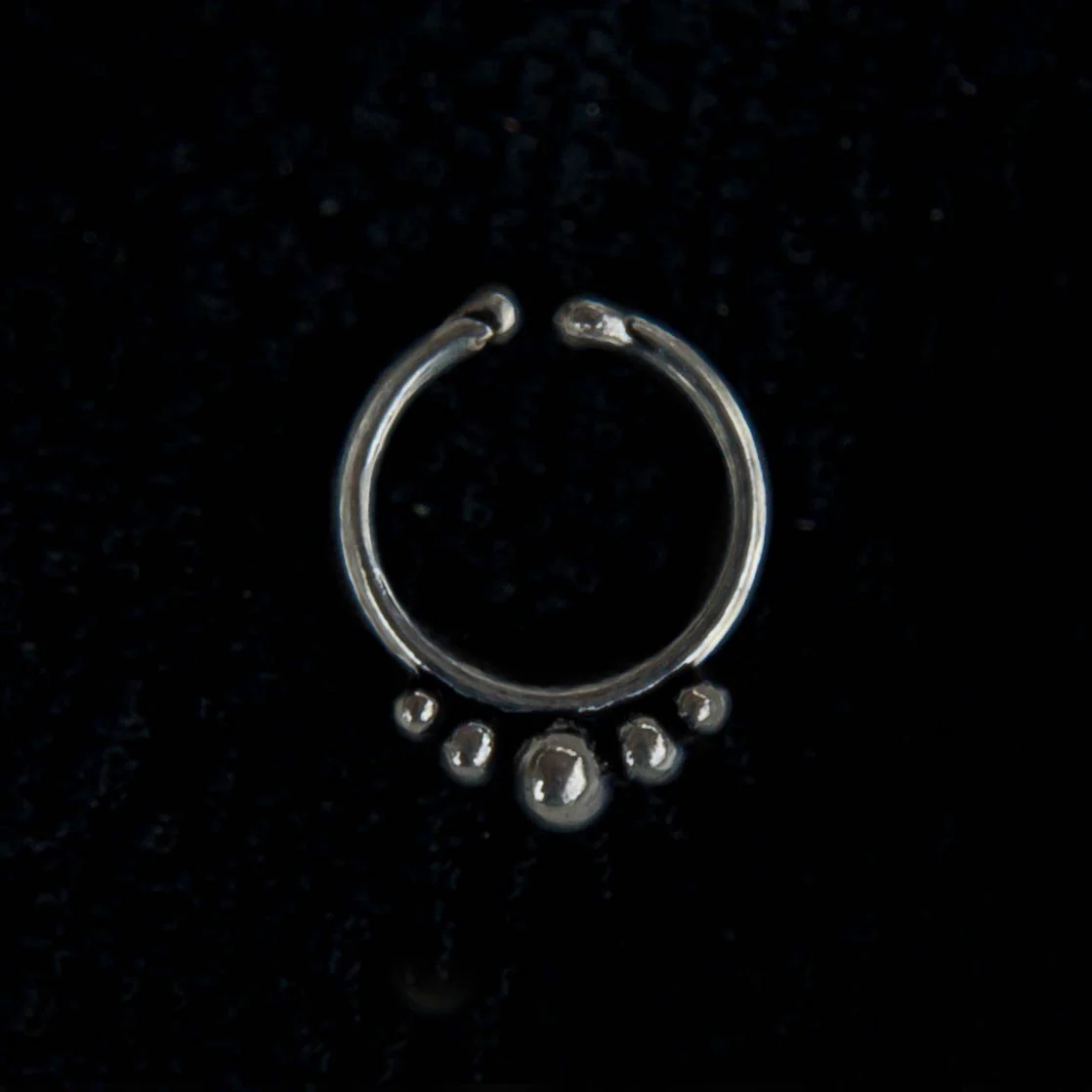 Simple elegant clip on septum ring. 925 sterling silver features five spheres. Can also be used as a clip on tragus ring...very pretty!