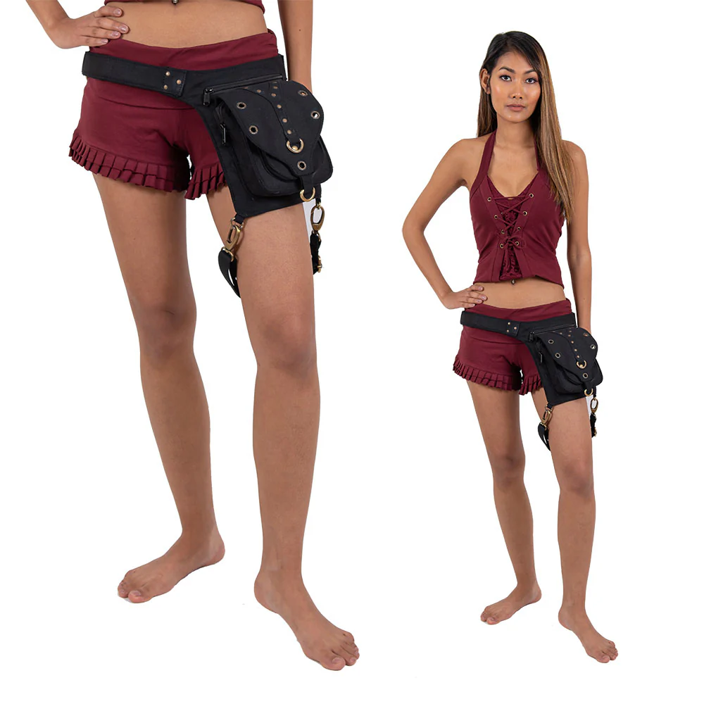 The perfect steampunk fanny pack. Get your stomp on in style with this comfy hip bag that attaches to your thigh with a removable leg strap, what more could you ask for! So whether your living it up at Burning Man, or bopping the night away at Coachella, this cotton canvas utility belt is for you :)